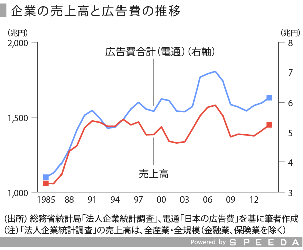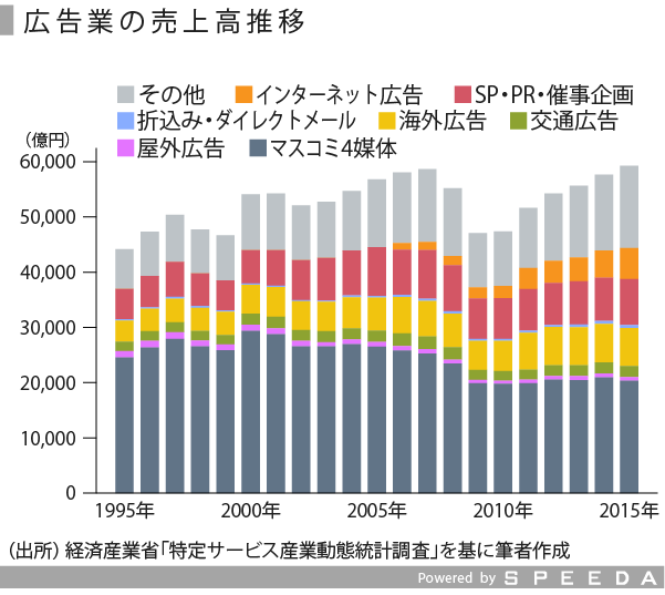 日本の広告費の推移グラフ 2019年まで 電通の調査 媒体資料のメディアレーダー