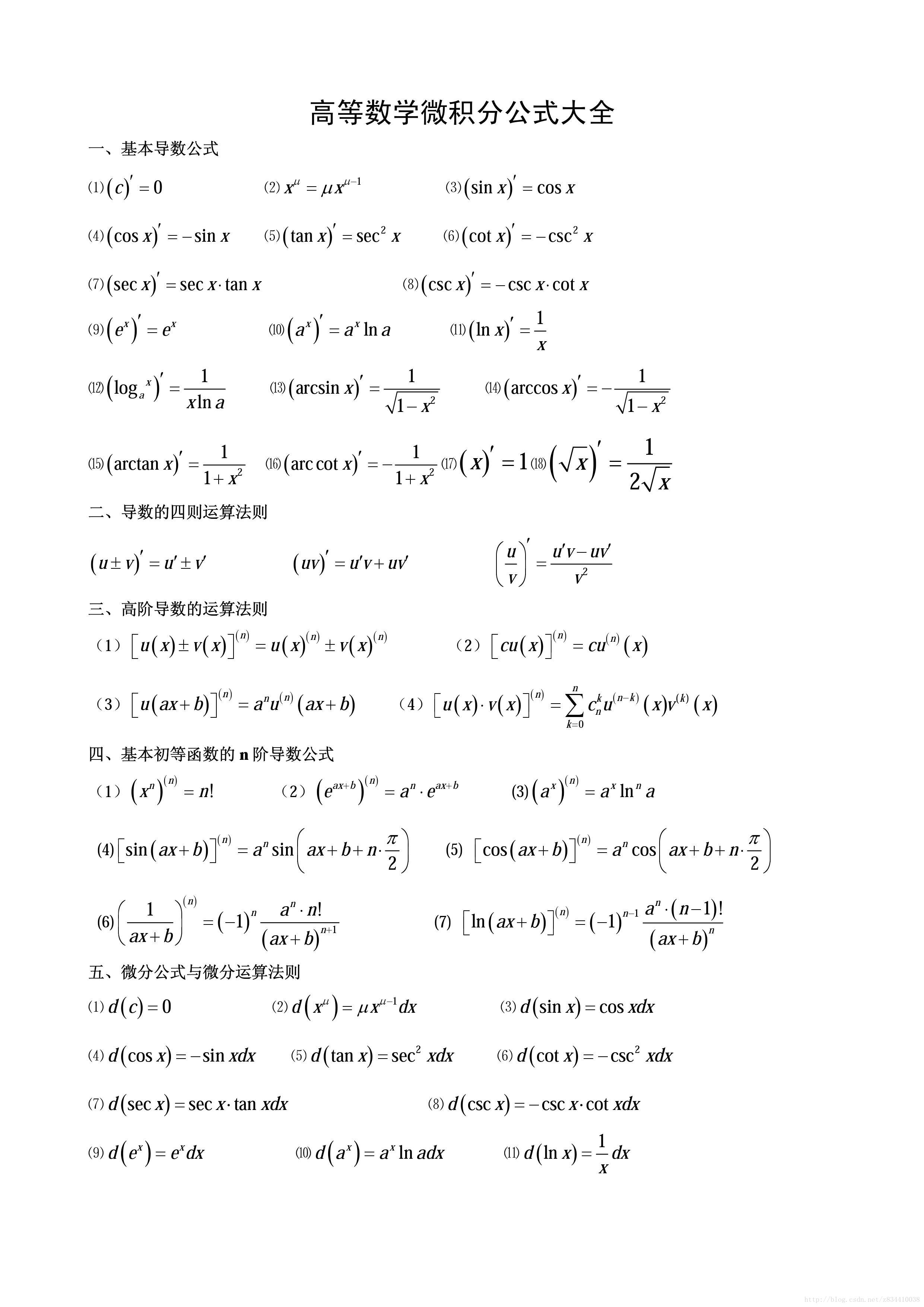 高等数学 微积分 常用公式 微分方程 级数 Falcon的博客 Csdn博客