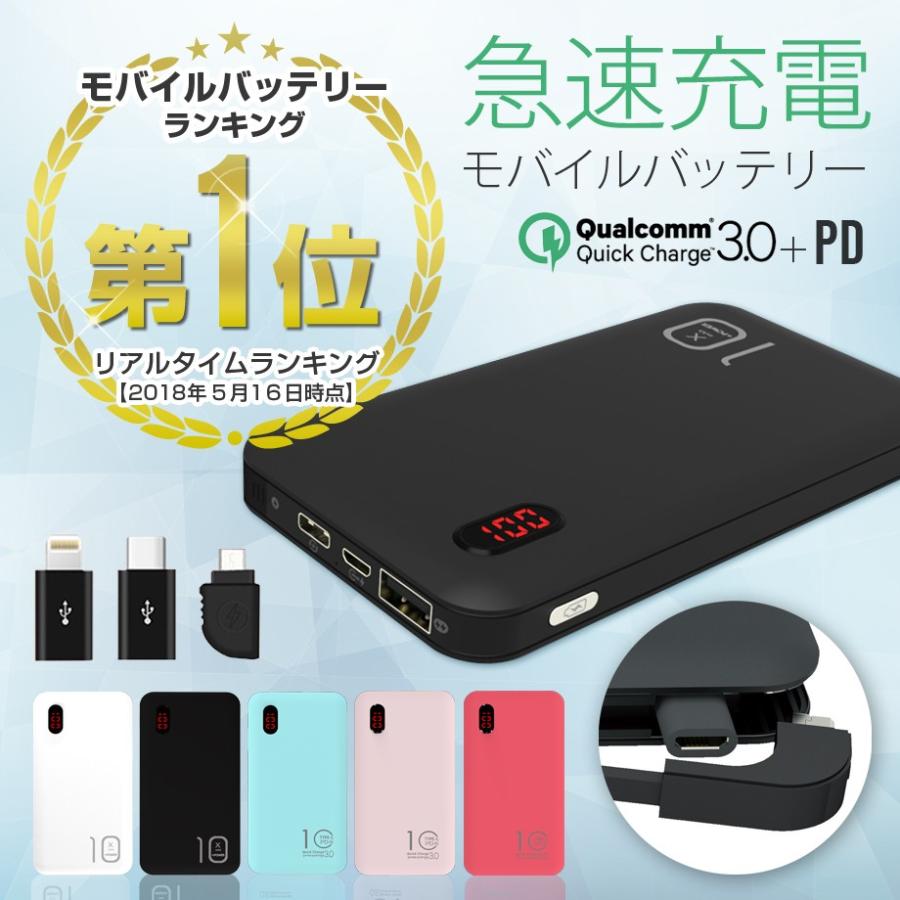 モバイルバッテリー 大容量 10000mah Iphone Android 軽量 薄型 急速充電 スマホ 携帯充電器 送料無料