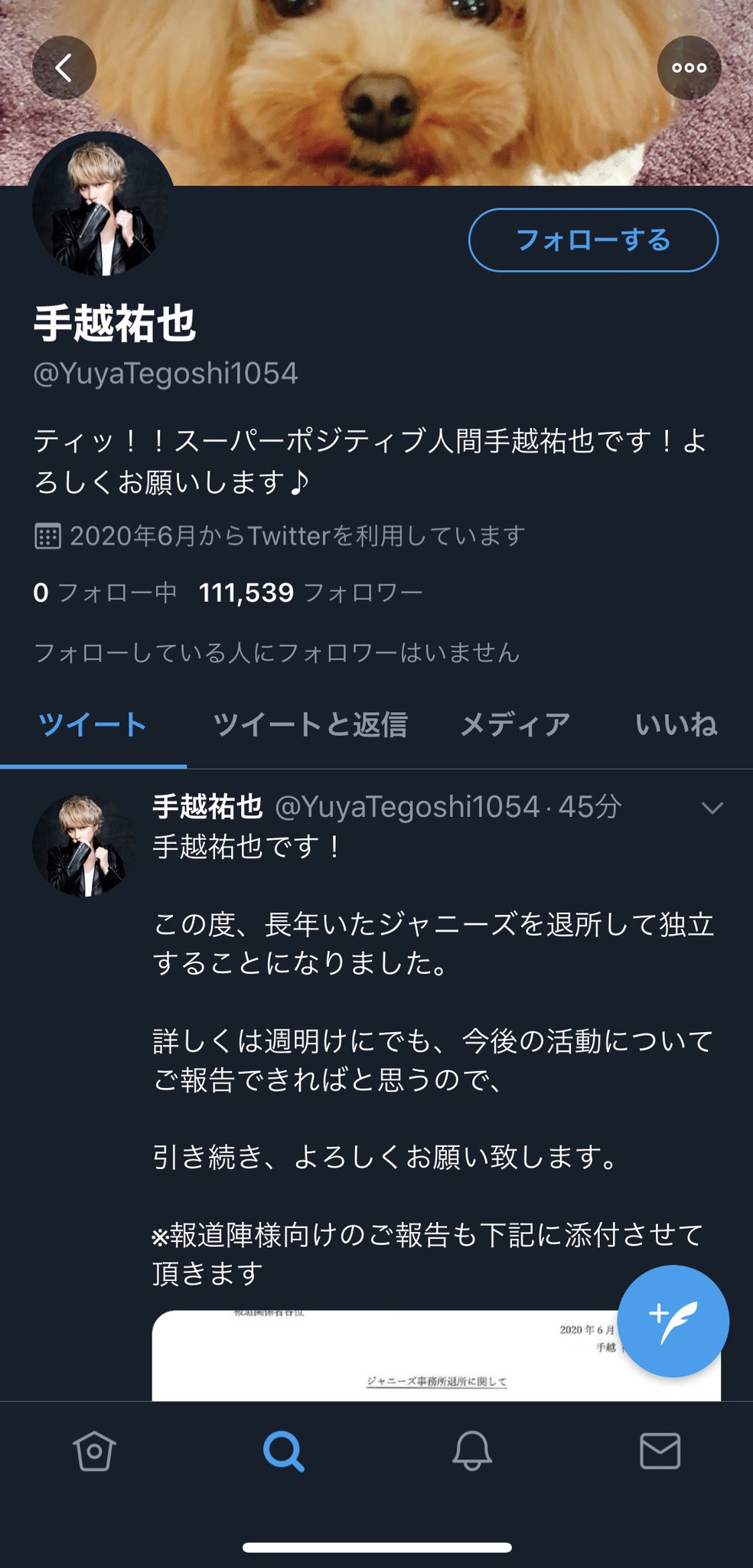 Tweet 手越退所 手越祐也twitter新アカウント開設 ジャニーズ事務所契約終了発表 涙 News3人 Naver まとめ