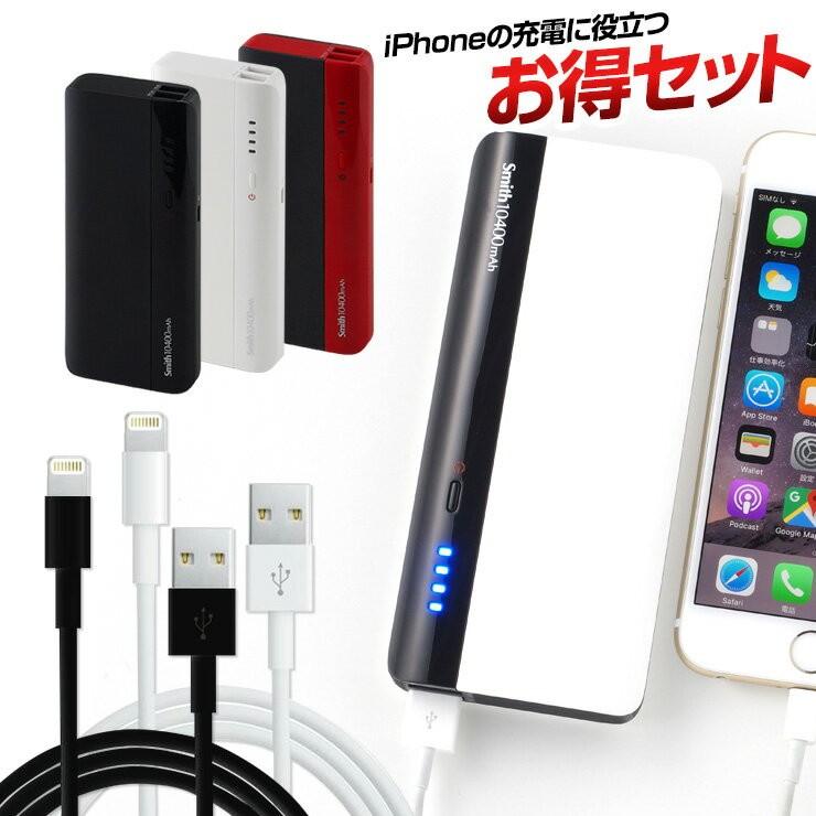 モバイルバッテリーとiphone充電ケーブルお得セット 携帯充電器 持ち運び用 大容量 急速充電 10 400mah 総合ランキング1位 おしゃれ Set Sm141 ココロミクラブ2号店 通販 Yahoo ショッピング