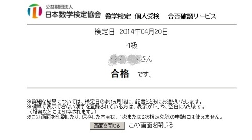 長男 数学4級合格 真緒庭1 4 ゝ B 楽天ブログ