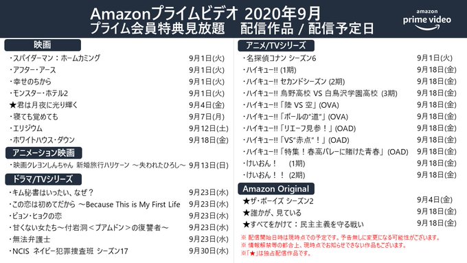 Amazon Prime Video 2020年9月に楽しめる新着コンテンツ