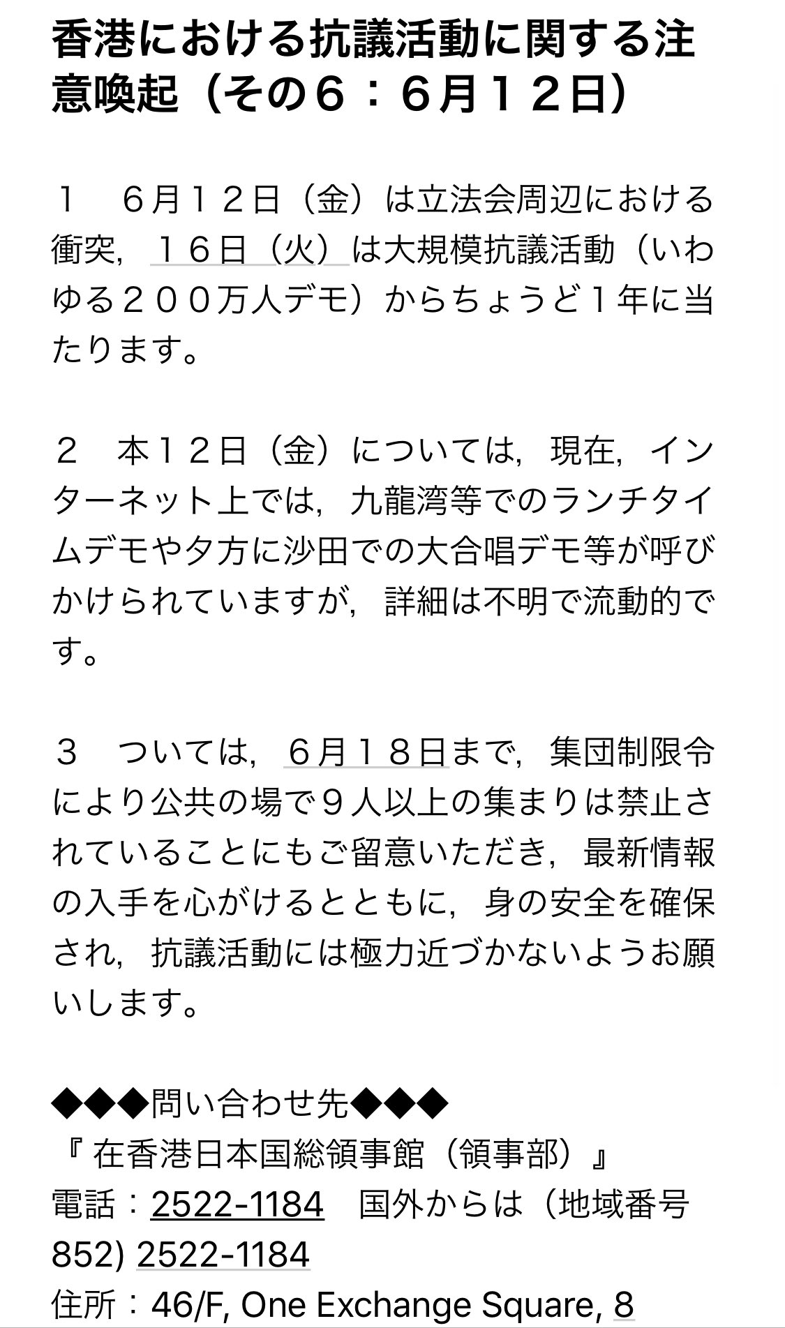 Aya على تويتر 香港の日本領事館からのアナウンスです 香港