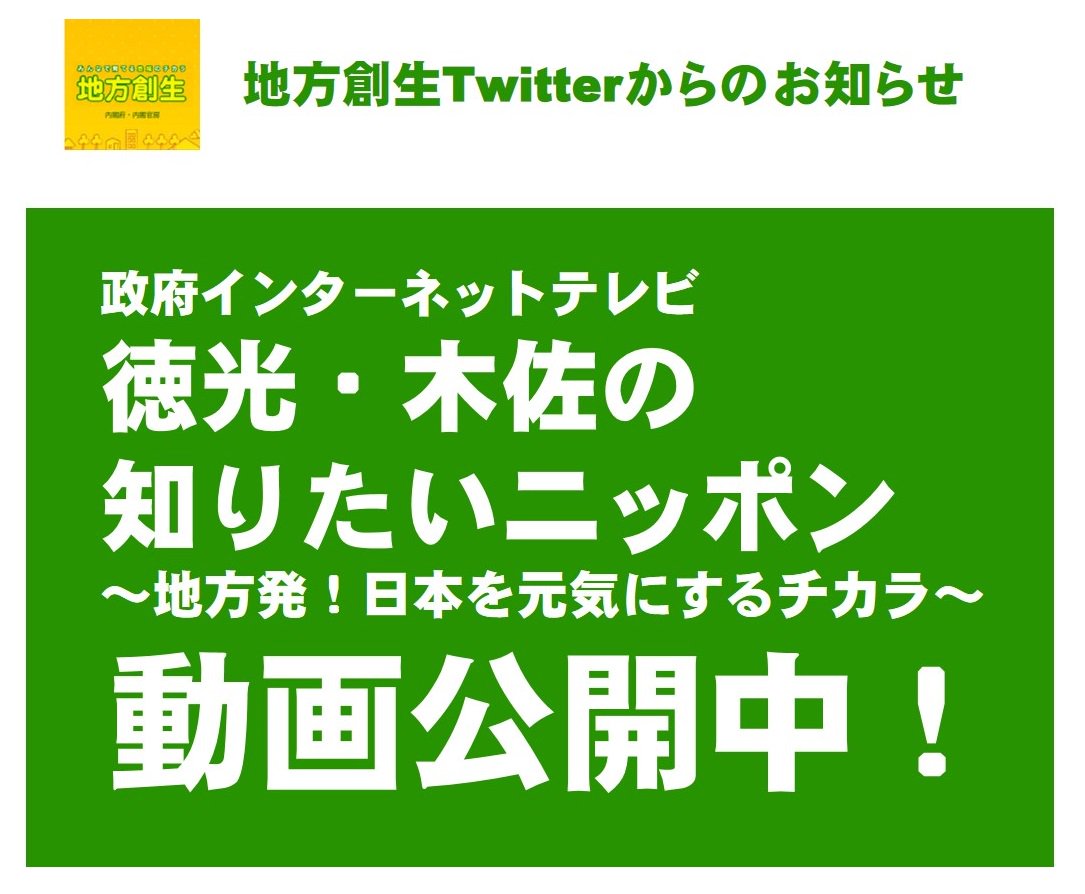 ট ইট র 地方創生 内閣官房 内閣府 動画 キーワードは 子は宝 高い出生率 を誇る 鹿児島県 伊仙町 の取組を紹介しています 徳光 木佐の知りたいニッポン 地方発 日本を元気にするチカラ 閲覧はコチラ Https T Co Pp5nfm3ssg